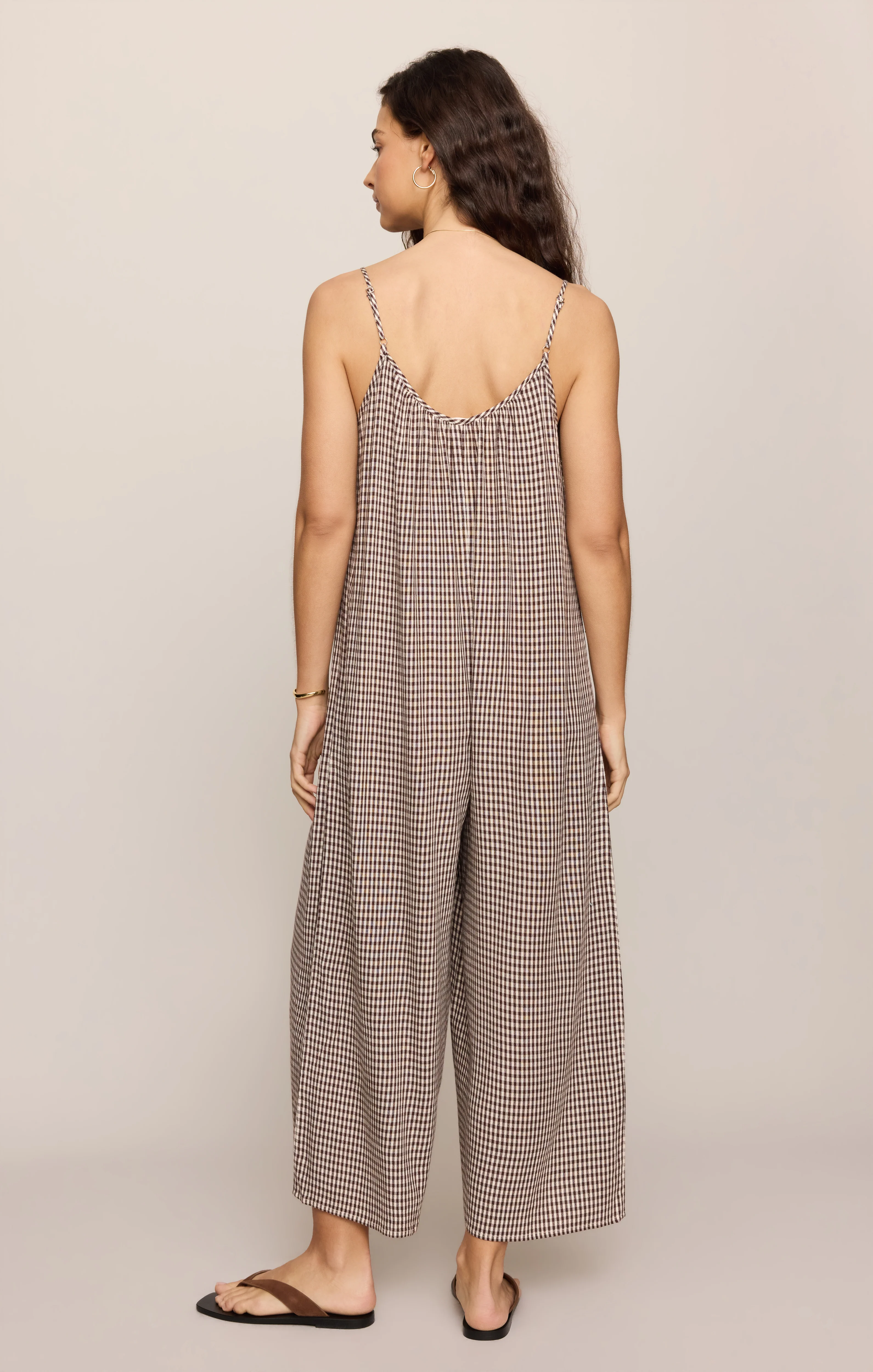 This lightweight jumpsuit features adjustable shoulder straps and a relaxed fit for warm days. A flared leg adds movement and a fun, easy feel.